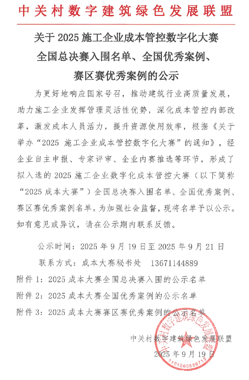 公司兩個(gè)項(xiàng)目在“2025年施工企業(yè)成本管控?cái)?shù)字化大賽”中榮獲佳績