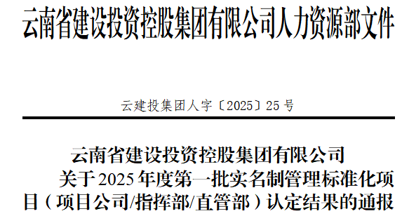 近日,集團通報了2025年度第一批建筑工人實名制管理標準化項目(項目公司/指揮部/直管部)認定結(jié)果,公司承建的5個項目成功通過集團實名制管理標準化項目認定,分別是第一直管部保山某項目、第二直管部云南農(nóng)業(yè)大學(xué)學(xué)生食堂(稷香園)建設(shè)項目、第七直管部五華區(qū)數(shù)字經(jīng)濟產(chǎn)業(yè)園西北新城園區(qū)項目、第八直管部文山職業(yè)技術(shù)學(xué)院產(chǎn)教融合實訓(xùn)基地項目。自集團啟動建筑實名制管理標準化項目認定工作以來,公司以“六制一金一表”…